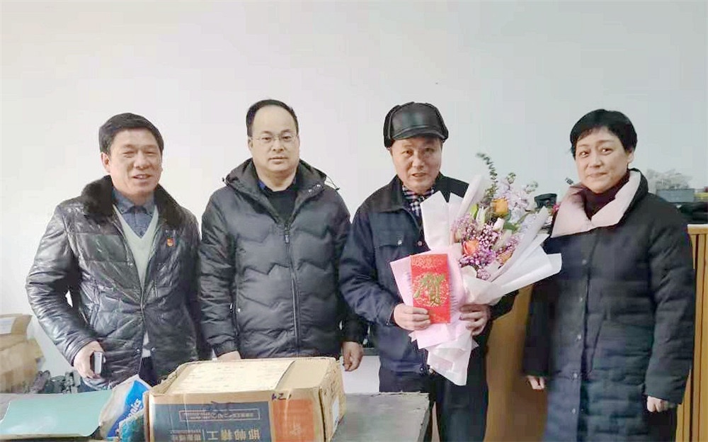 2021年1月12日,浙江省國防工業(yè)工會徐航主任、王哲(副處級調(diào)研員)代表省國防工業(yè)工會來公司慰問全國勞動模范余昌琴和困難職工。公司黨委書記、工會主席姚錦南陪同。