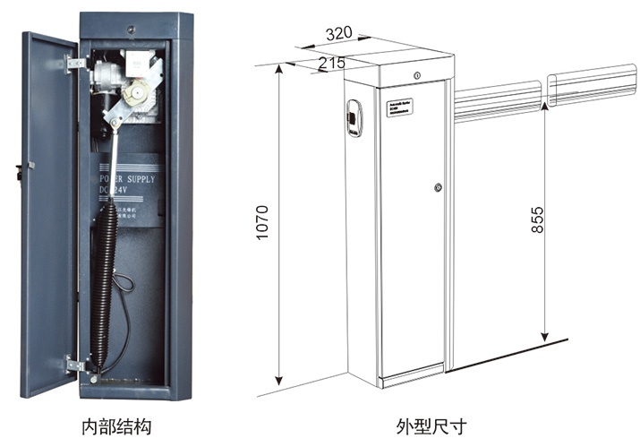 ● 直流驅(qū)動馬達,具備慢啟動、慢停止,擋桿運行平穩(wěn);